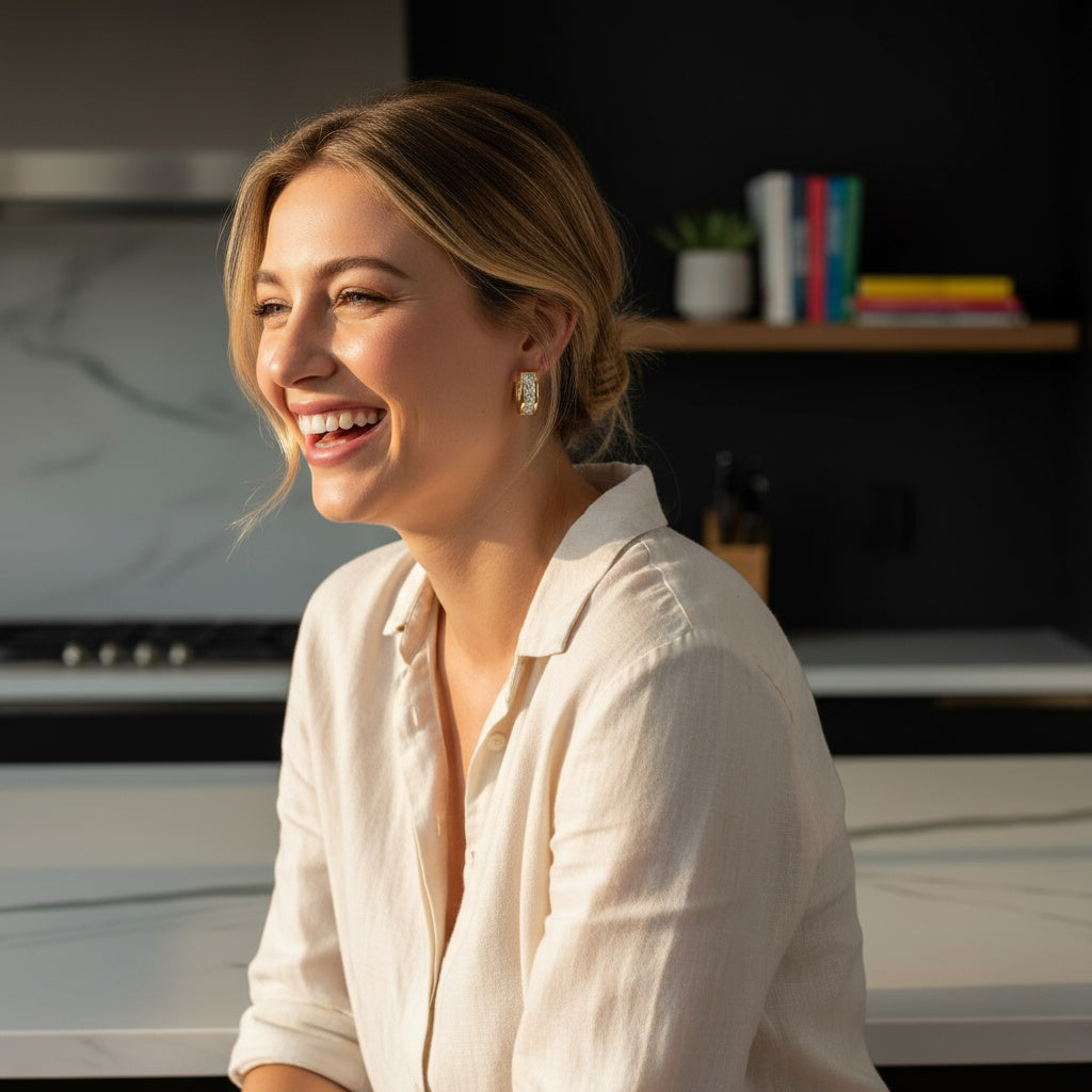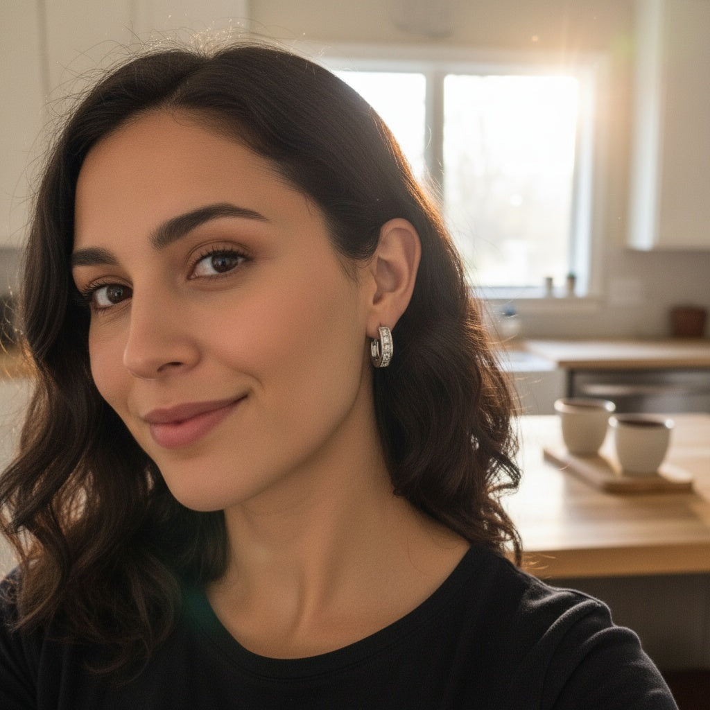 See how our hoops elevate every look—from casual brunches to evening parties. Lightweight comfort meets lasting shine for any occasion.