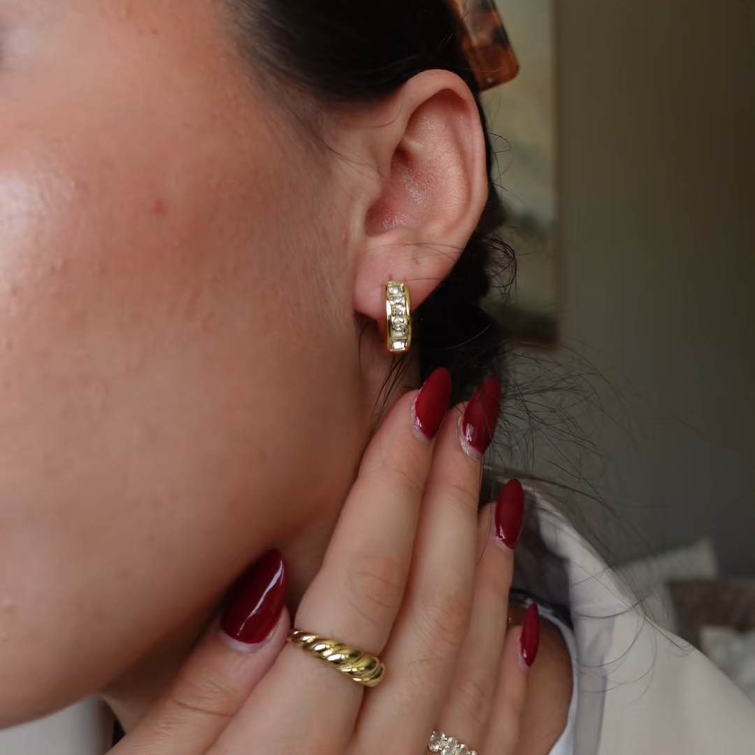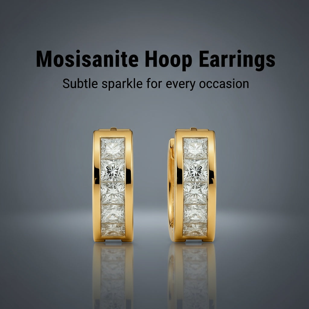 Our hoops feature genuine moissanite accents set in tarnish-resistant metal plating for lasting shine and durability.